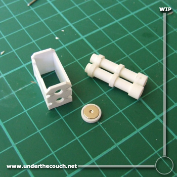 Initial assembly, with the magnet slotted on the back to attach to the arm: