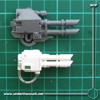 Lascannon almost finished… with a comparison shot beside a regular dreadnought Las arm: