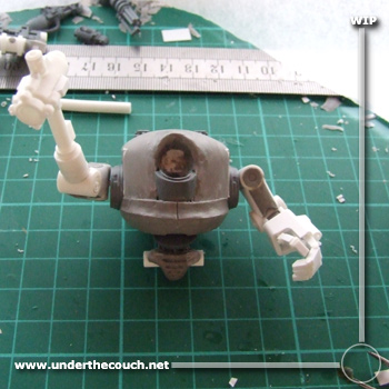 The cylinder protruding from the top is the built-in meltagun muzzle. Still some detailing to go, but the general shape is there.