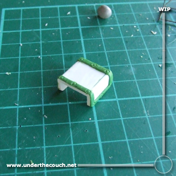 First leg smoothed down a little and putty on the second: