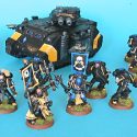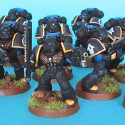 My original Space Marine army, mostly assembled and painted between 1993 and 1996. Constructed from 2nd edition starter set marines, Space Crusade marines and some cardboard.