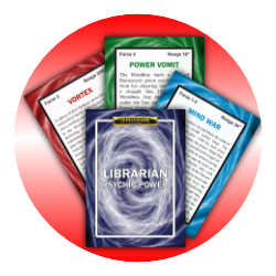 A deck of Warp cards for resolving psychic powers in Warhammer 40,000 2nd edition. These are redesigned versions of the original cards, but work the same.