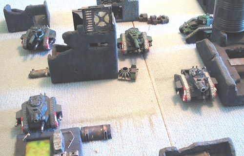 With various assorted rattles, bumps and gurgles, the advance elements of the Armoured Company moved into the target area, spreading out to encircle the objective. Secure in their armoured shells, the Guardsmen rested, awaiting the arrival of the remainder of their forces.