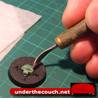 Obviously, the amount of putty you’ll need will depend on the size of the skull you want. You might want to experiment on some scrap bases or plasticard to get the hang of sizes and shapes before trying to sculpt directly onto your miniatures.