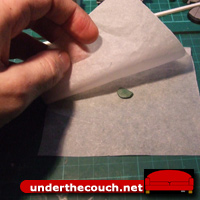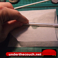 Roll the putty out flat by rolling the handle of the hobby knife across the top of the baking paper.