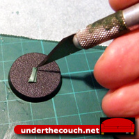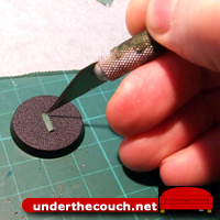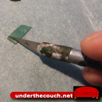 It can sometimes be a little tricky to pull the strip off the paper. If that’s the case, pushing the knife back into the cut and pulling it sideways and up (away from the rest of the putty) can pull the strip off and leave it attached to the knife blade by one side. You can then grab it with a pair of tweezers.