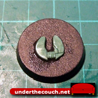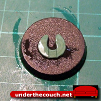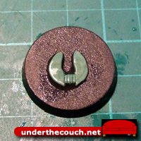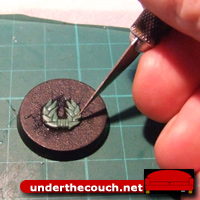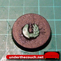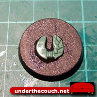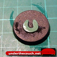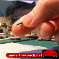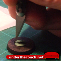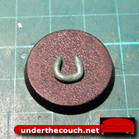 Bend the sausage around into a horseshoe shape, and press it lightly into place. You might want to try practicing a few on scrap plastic or a spare base to get the hang of it before you try sculpting one in place on a miniature.