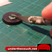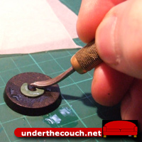 First off: Tools. You’ll need putty (obviously), your sculpting tool of choice (shown here are a standard sculpting tool and a wax carver, which has a rubber tip that is just perfect for green stuff work where you don’t need particularly hard edges) and a hobby knife.