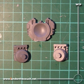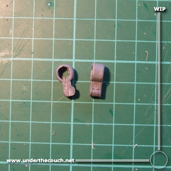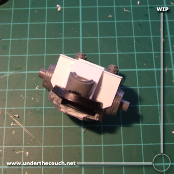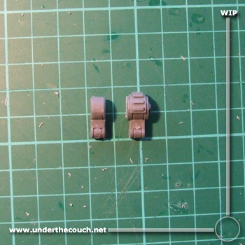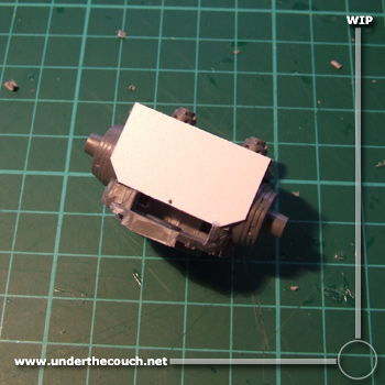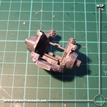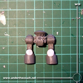 They needed to be more streamlined, and his hips needed some narrowing. So, I sliced off the external cabling and hydraulics, severed the legs at the hips and knees, and wound up with this: